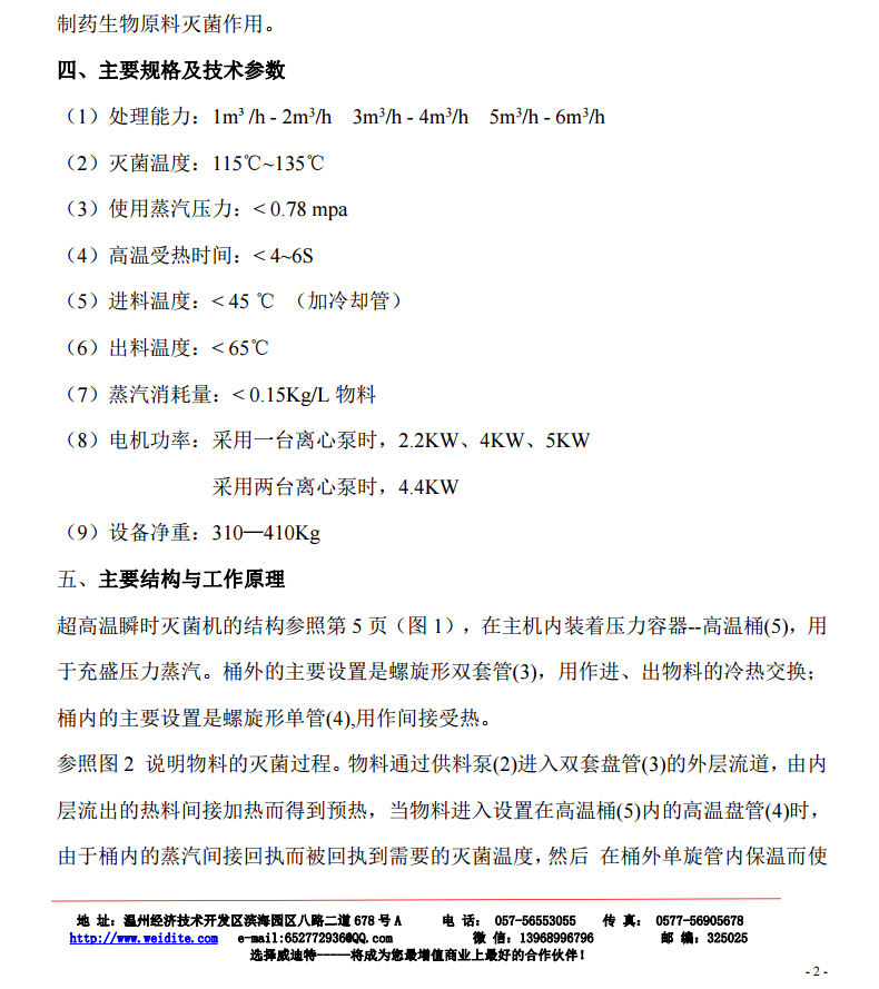 滅菌機(jī)與物料接觸部分,都采用不銹鋼制造,雙套盤管用專用機(jī)床加工,同心度高。內(nèi)表面光潔,從而使液料通過雙套盤管時(shí)形成均勻的液層,加熱十分均勻。