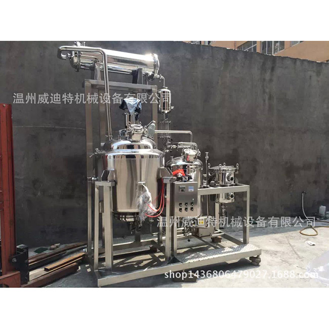 2、酒精提取等:首先將藥物和酒精添加到水箱中。必須密封。蒸汽施加到層間熱源,當(dāng)水箱達(dá)到所需溫度時(shí),打開冷卻水以減少熱源,使上升的汽化酒精通過冷凝器變成液態(tài)酒精?;亓骶妥銐蛄?。為了提高效率,迫使泵循環(huán),通過泵將化學(xué)藥品從儲(chǔ)罐底部吸出,并將氣缸頂部的入口返回儲(chǔ)罐以減輕局部竄氣。