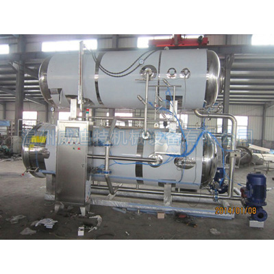利用鍋內(nèi)轉(zhuǎn)換的熱水循環(huán),浸泡式殺菌,在工作過程中,對鍋內(nèi)溫度壓力、殺菌時間、進汽、排汔、進水、排水等過程。