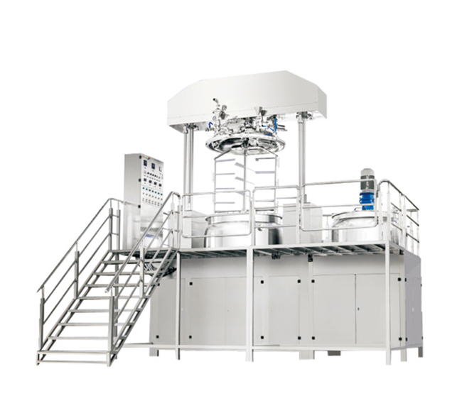 高剪切乳化機(jī)的物料微粒化、乳化、混合、調(diào)勻、分散等可于短時(shí)間內(nèi)完成。鍋內(nèi)物料通過均質(zhì)機(jī)的高速內(nèi)循環(huán)剪切混合乳化,相向雙攪拌,順時(shí)針框式刮壁攪拌,逆時(shí)針漿式攪拌,刮板攪拌器在運(yùn)轉(zhuǎn)時(shí)產(chǎn)生離心作用,使四氟刮板緊貼鍋壁,有效的解決了鍋壁沾料問題,不留死角,理想的變頻調(diào)速裝置可使其轉(zhuǎn)速任意無級(jí)調(diào)速。