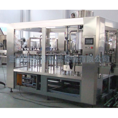 本機(jī)集沖瓶、灌裝、旋蓋三位一體,PLC自動(dòng)控制。經(jīng)過(guò)預(yù)處理的PET空瓶,通過(guò)無(wú)菌水沖洗后自動(dòng)進(jìn)入灌裝封口工序。