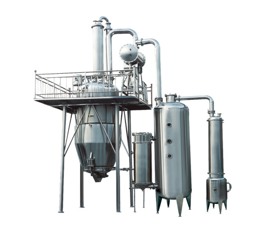 After feeding materials are extracted through boiling method for certain time, make extracting solution under comparatively high temperature enter concentrator by filtering, after being condensed second steam enters liquid receiver, then convey it to extraction tank with pump, the steam generated by extraction tank is regarded as the heat source of evaporator to ensure the steam generated in time of extraction can be fully utilized, therefore, this equipment has good performance in energy saving. From top to bottom, the solvent dissolves soluble matter in medicinal material through medicinal material layer into the bottom of extraction tank, then sucked into concentrator for concentration. New solvent can be formed when repeating the above process. Extraction is completed (extracted liquid is colorless) after many-time round of big concentration/circulation. At this moment, extracting liquid stops entering the concentrator, which continues operation until required proportion is obtained.