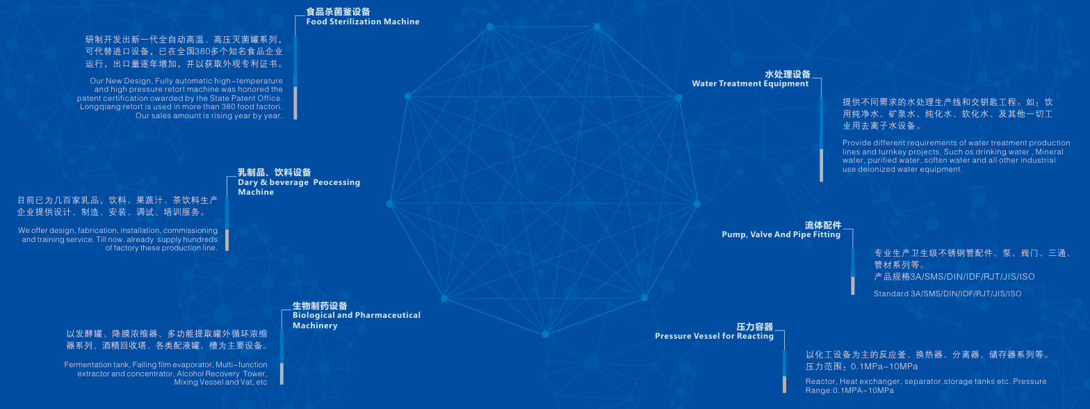 殺菌鍋、高剪切乳化機、滅菌機、制冷罐、不銹鋼攪拌罐、乳化罐、果汁飲料生產(chǎn)線、濃縮提取設(shè)備、提取濃縮設(shè)備等產(chǎn)品在國內(nèi)各食品制藥企業(yè)正常運行中,為用戶提供了完善的服務(wù),為他們的生產(chǎn)經(jīng)營和產(chǎn)品質(zhì)量提供可靠性保證,受到用戶的一致好評。